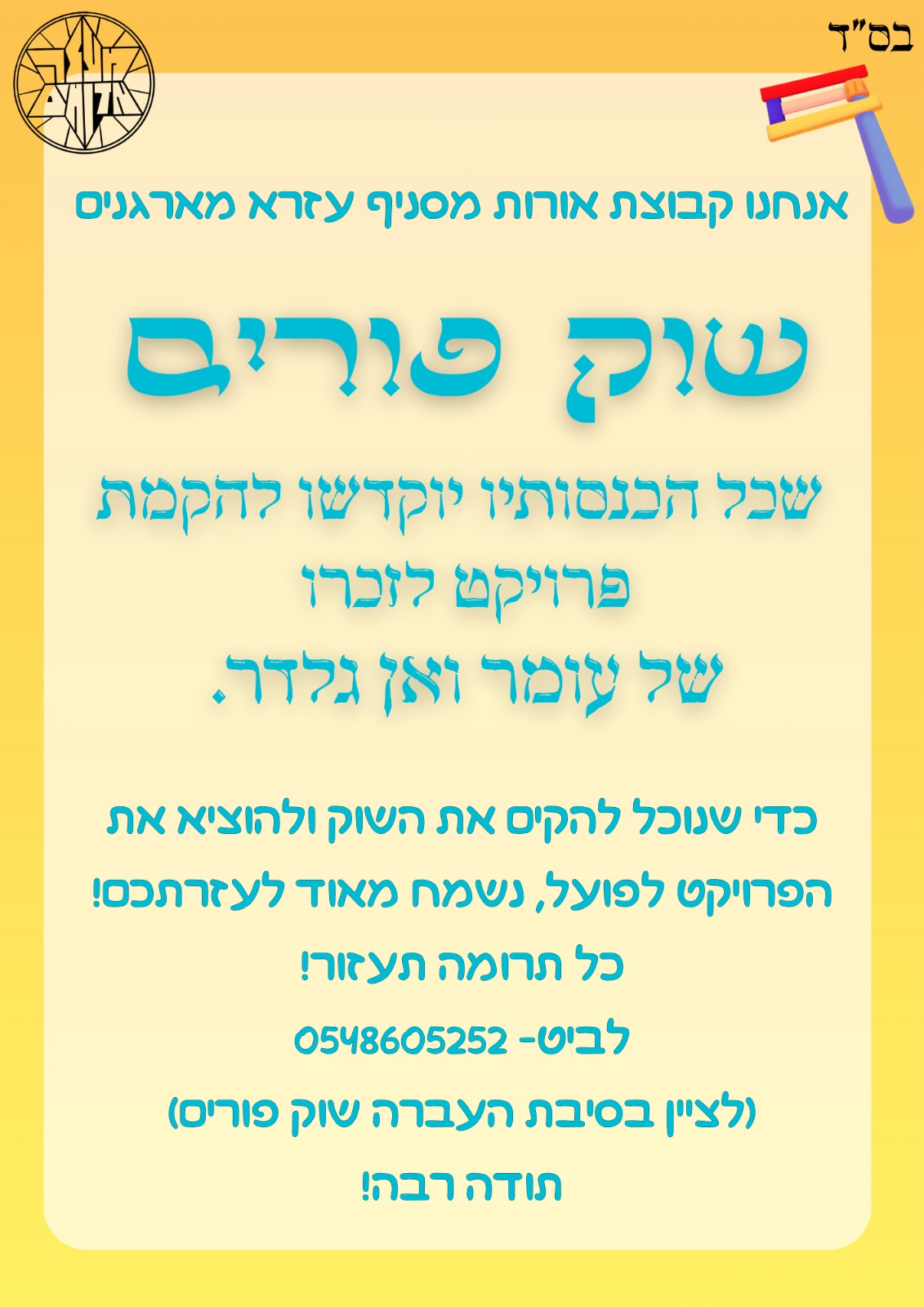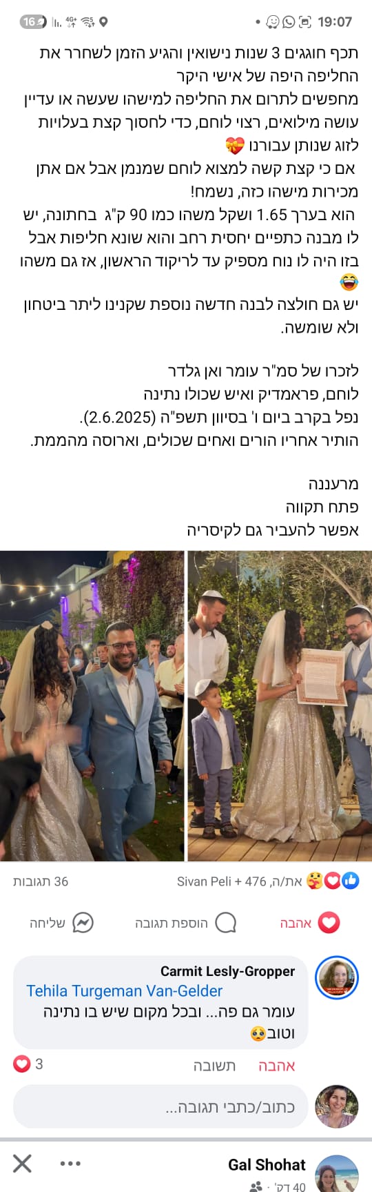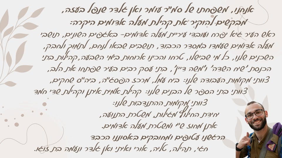 שהקב״ה יושיע אותנו כעם ויתן כח לתהילה וחגי, לטליה, אורי ואיתי להתמודד עם האסון הזה וגם לנעמה חברתו.