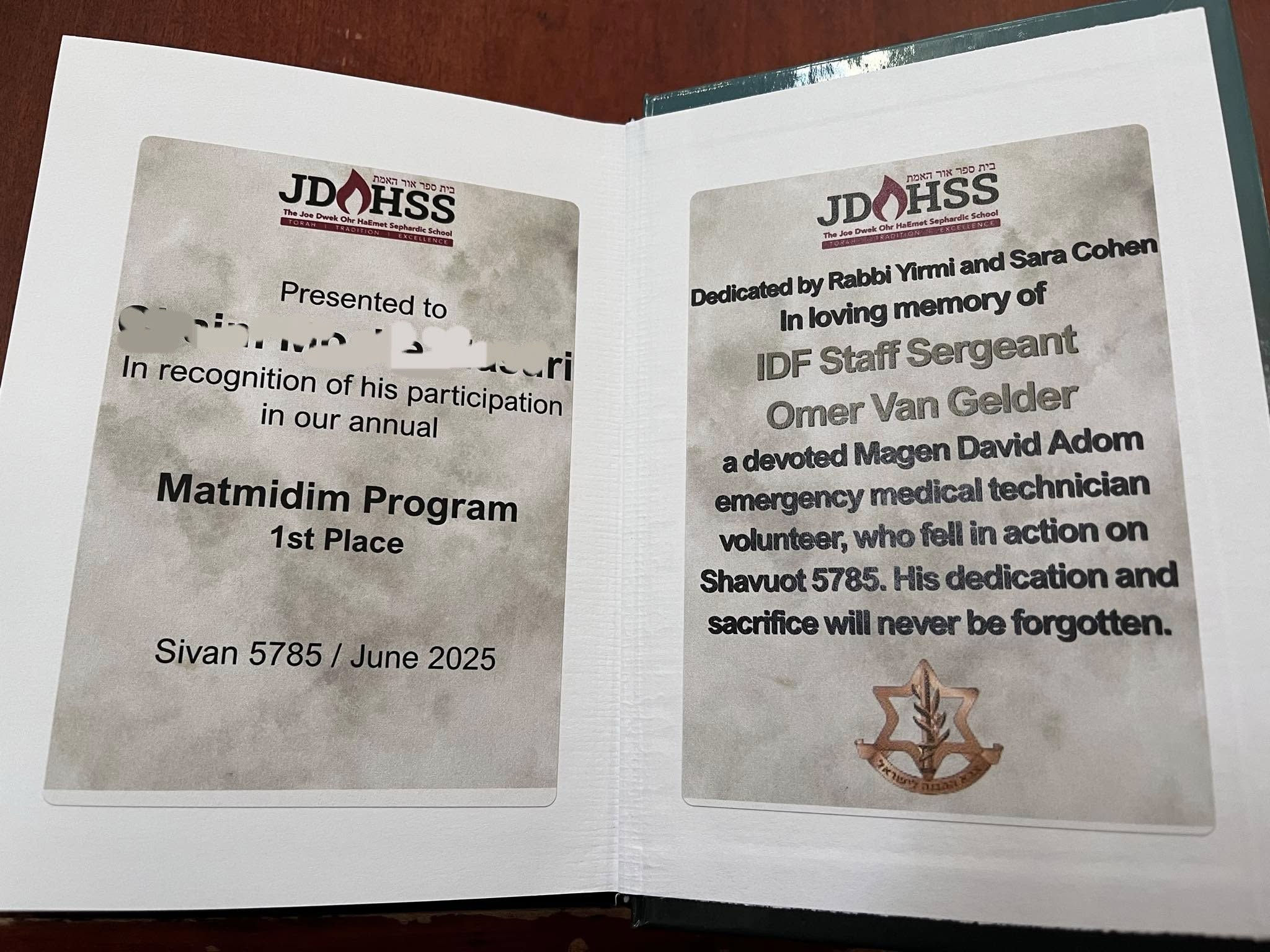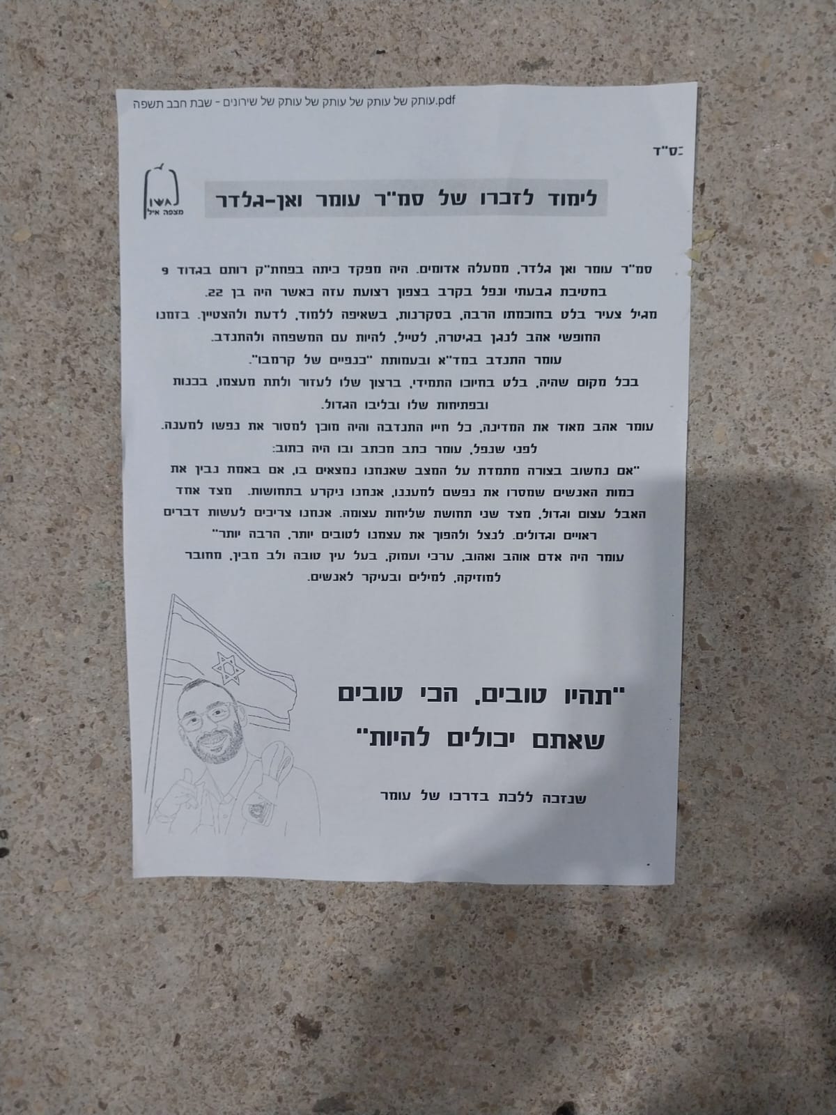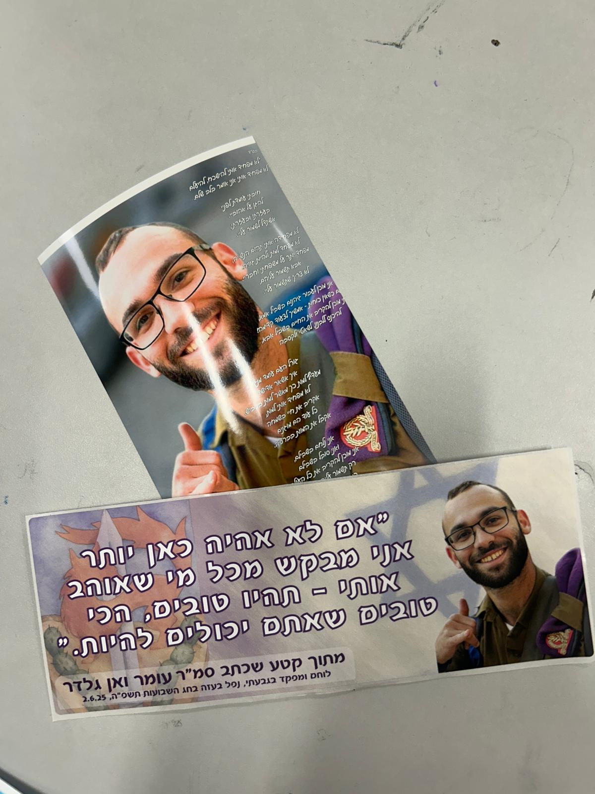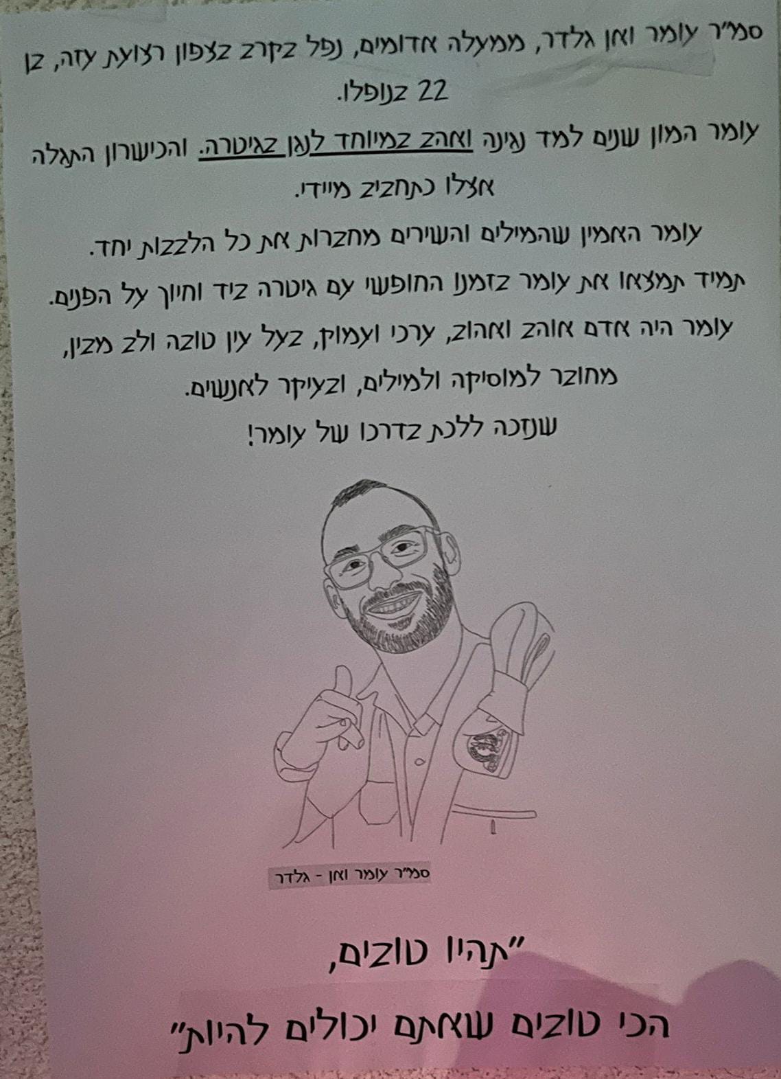 רגע לפני שבת, משתפת אותך, שבתעודות של תלמידי בית ספרי, מופיע המשפט של עומר האהוב, כל התלמידים ילמד עליו ביום חלוקת התעודות ויכירו איזה אדם מדהים היה!