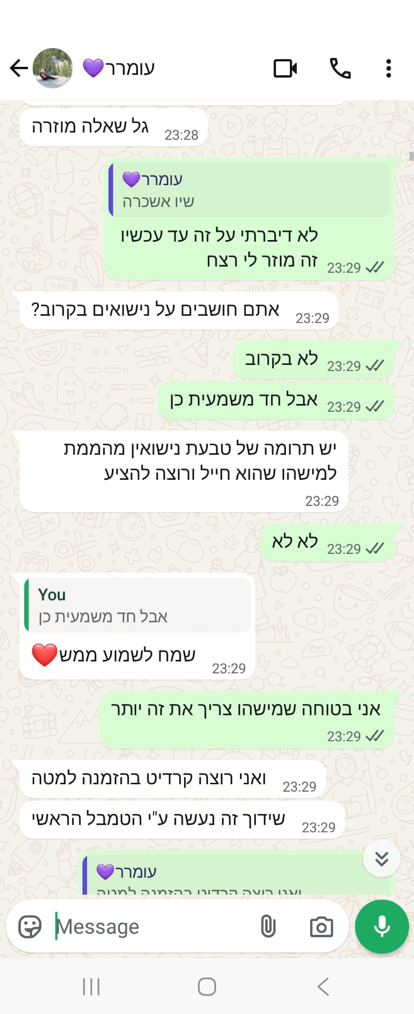 עומר שלי, אהבה,
