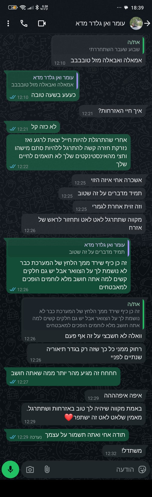 דיברנו המון, גם סביב ההתנדבות שלך במד"א, על החשיבות..