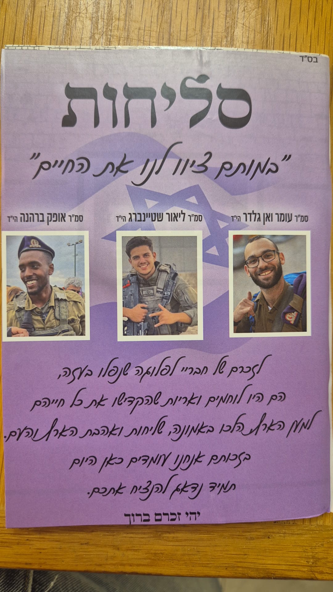 זכינו לקבל מחלקה של חיילים חרדים בגדוד תומר (רותם) בגבעתי. המפקד שלהם, אורי ביים, הוא חבר של עומר והכיר אותו היטב.