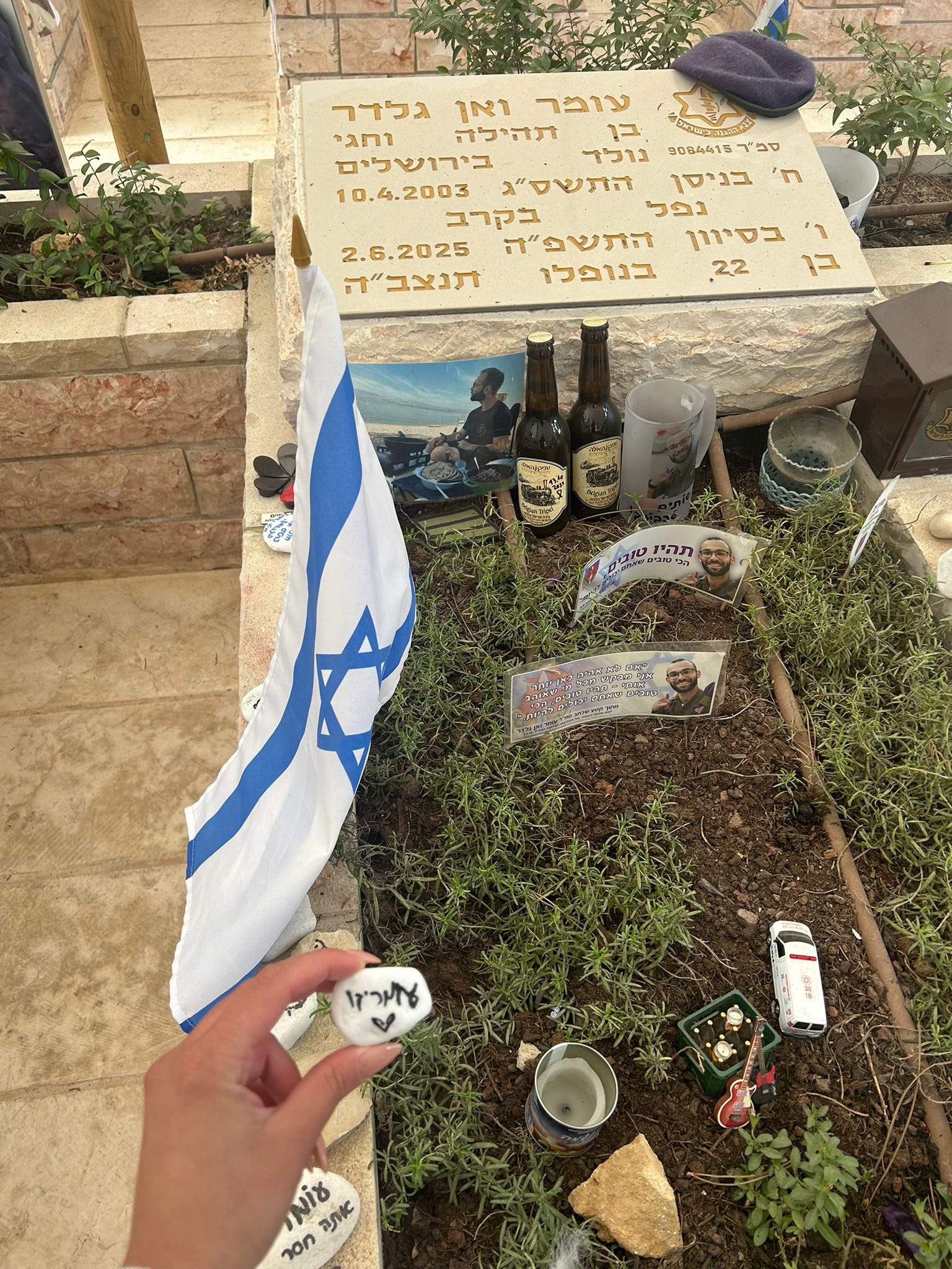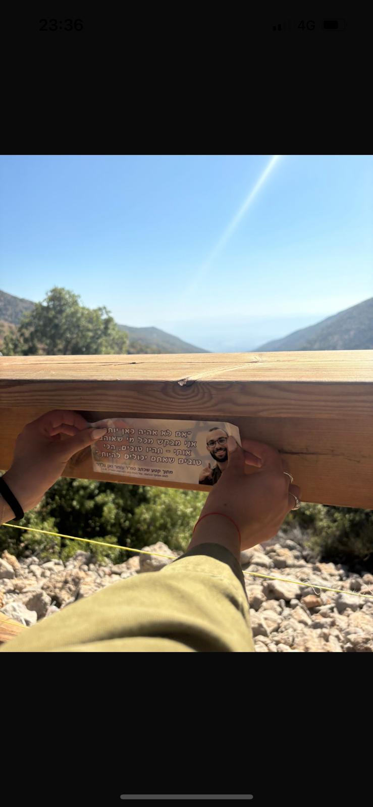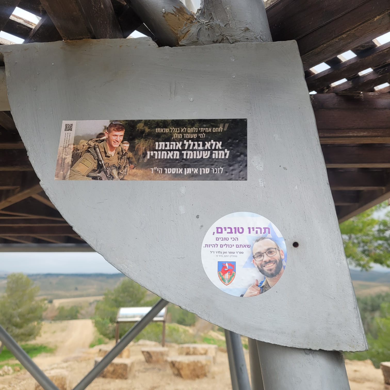 פסל הידיים שעומר מאוד אהב לשבת לידו, והפלוגה שלו צפויה להקים בסמוך אליו מצפה לזכרם של עומר, ליאור ואופק.