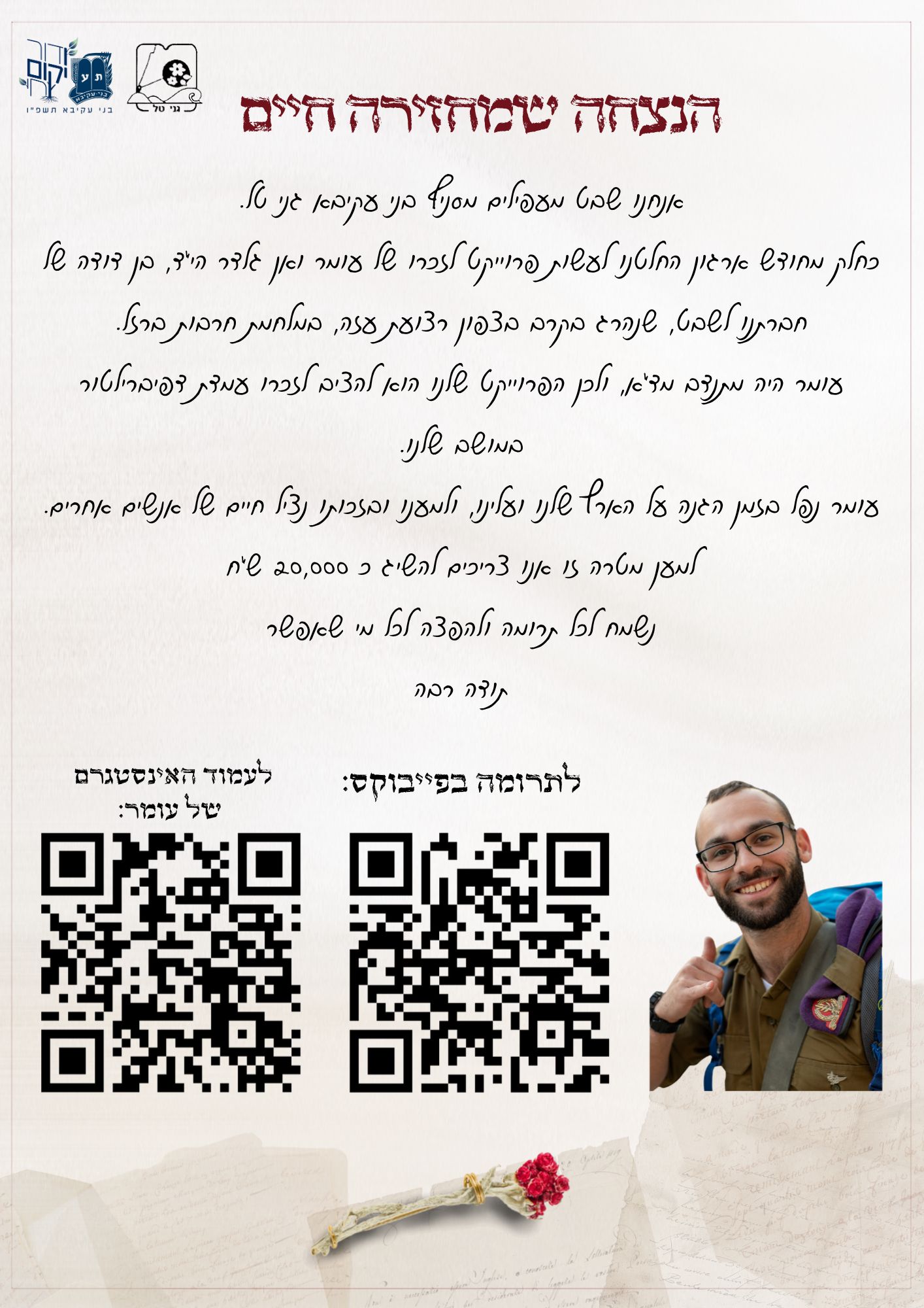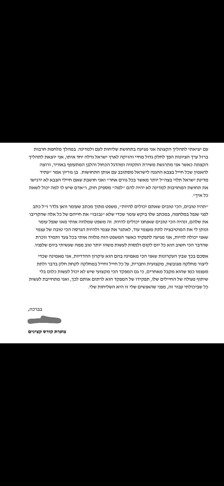 תודה לחטיבת גבעתי על הפרויקט המרגש, תודה לאורי מפקד המחלקה, שביקש והתעקש לעשות את הפרויקט הזה עם המחלקה שלו על עומר, ותודה רבה רבה לחיילים המקסימים על השירות שלהם, על האומץ ועל התקווה שהעניקו לנו היום.