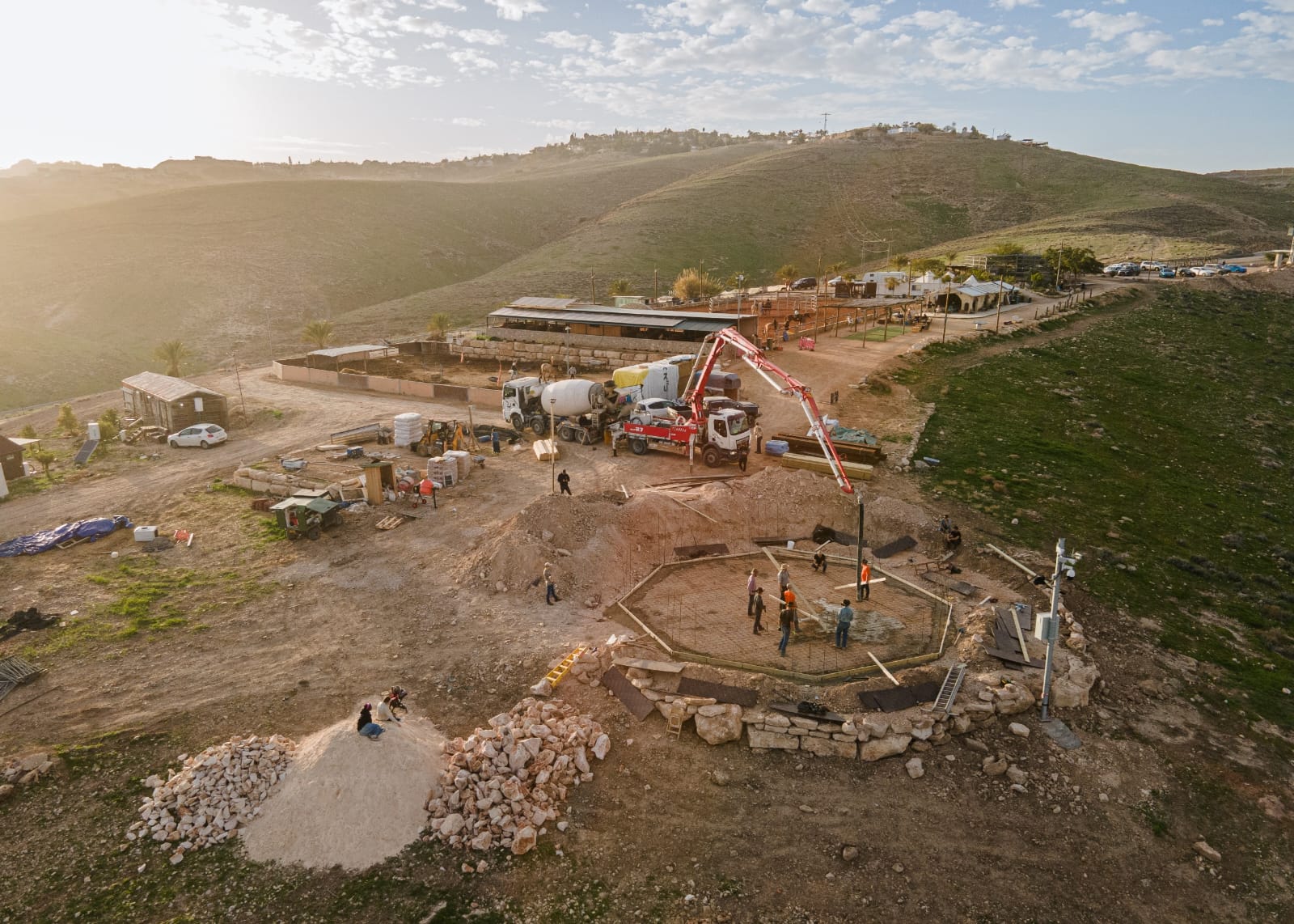 רגעים מיוחדים וקסומים ממש. ירח מלא של ט"ו בשבט. "הבטון מוכן" (6 שעות מיציקה) וכולם מצטרפים לחשוף את האבנים מהבטון. בדיון איזה שיר לשים ג'ון אומר, השיר שמדבר על מה שאנחנו עושים כאן "something good is going on"... חצי מקירות המבנה הושלמו... מרכז שיטפל בלוחמים המדהימים שלנו קורם עוד עור ועוד גידים... מרכז שישא את שמו של עומר ואן גלדר שרכב אצלנו בחווה, גדל לנער מדהים, מוזיקאי, מטפל, נפל בלחימה בעזה והיום אחיו הקטן אתי... ממשיך ורוכב בחווה, מעבד גם את ההתמודדות עם אובדן קשה כל כך. https://www.facebook.com/reel/1434696734730304/?s=single_unit
